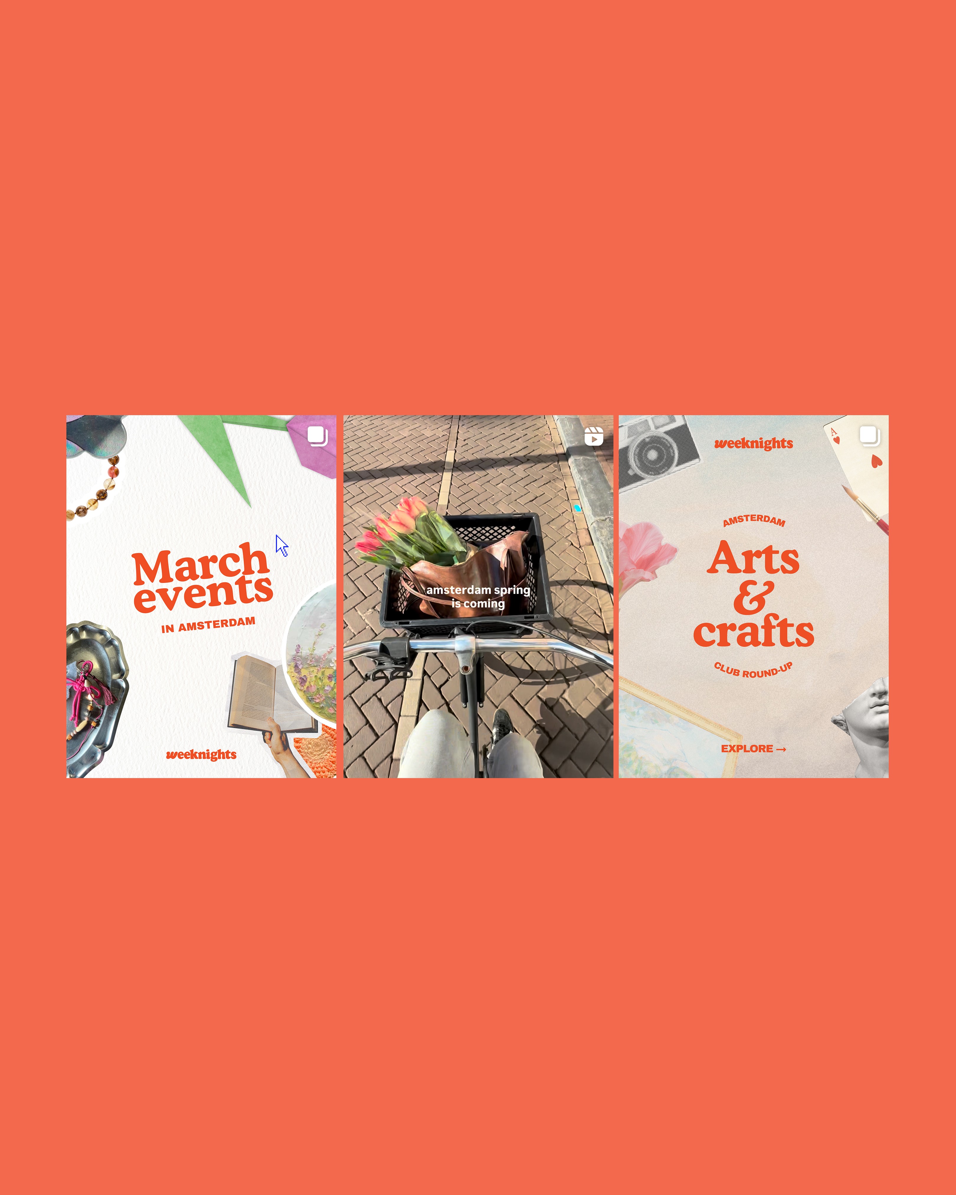 Weeknights is an early-stage start-up with a strong product idea but nothing around it yet. No name recognition, no visual language, no tone of voice. They needed a brand that could resonate with an Amsterdam audience looking for genuine social connection, not just another events platform.