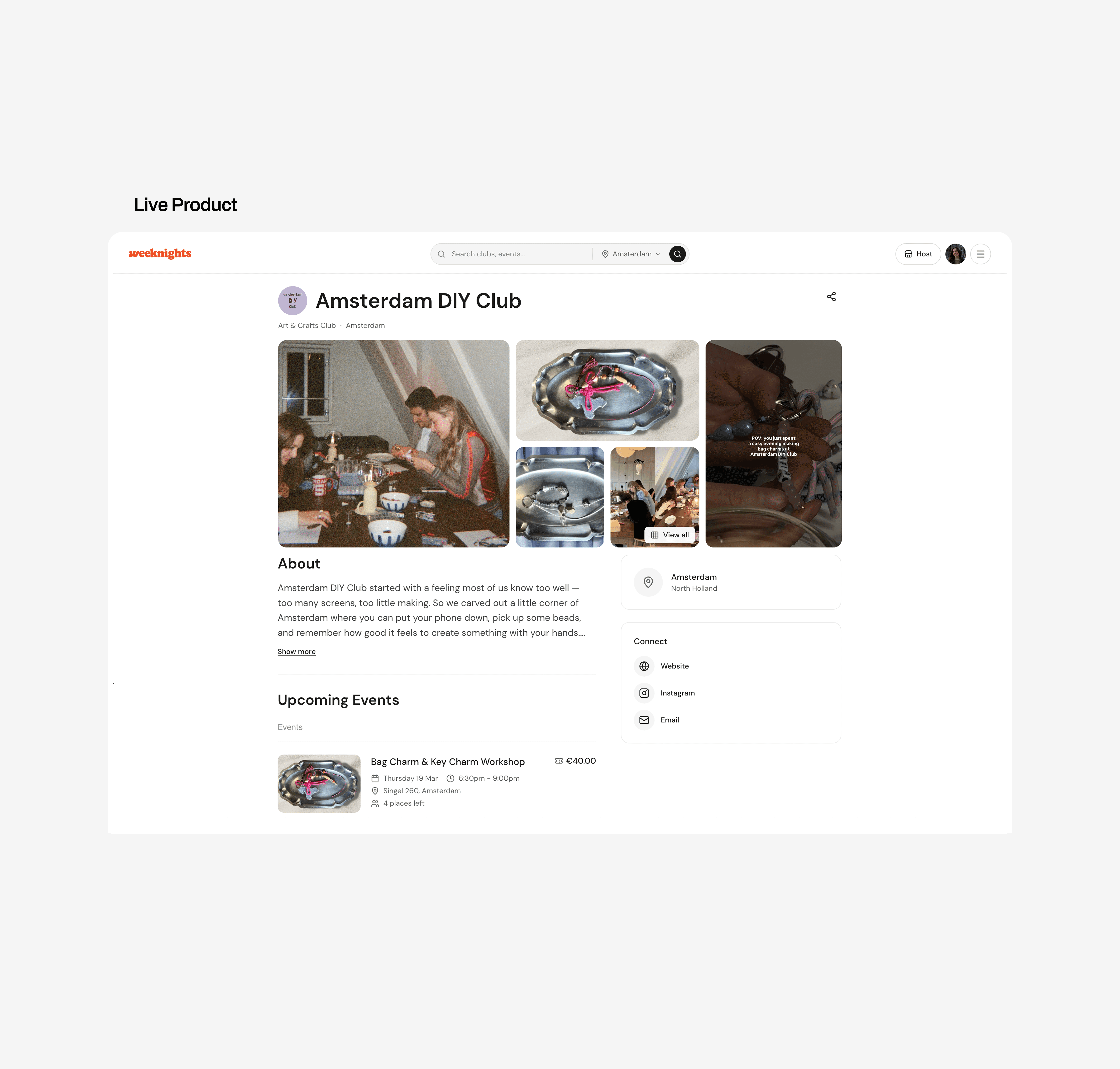 I led the brand and creative strategy end-to-end, starting with positioning and working outward into identity. That meant defining what Weeknights stood for, who it was speaking to, and how it should feel, then translating that into a visual system, copywriting direction and website that held it all together. The insight driving everything was that the audience was not looking for more things to do — they were looking for somewhere to belong.